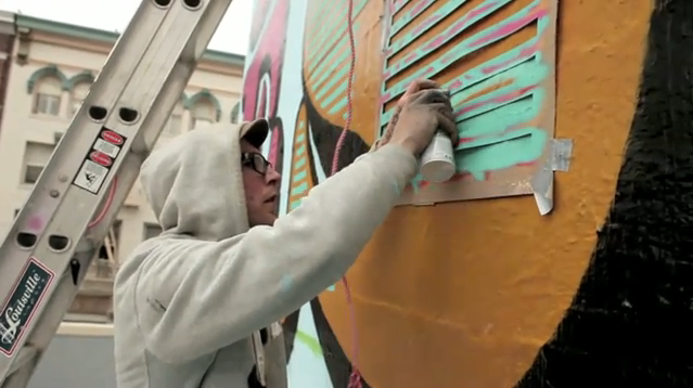 UK based artist EINE spent the month canvasing San Francisco with his stylized lettering. Utilizing the urban landscape of ‘the city’, EINE has impressed with the shear scale of his work. Offering San Franciscan’s simple phrases or words such as “happiness” – his work lets you draw from your own bank of mental imagery. This public execution of street art aimed to offer viewers a more participatory role in the observation and evaluation of artistic creation.